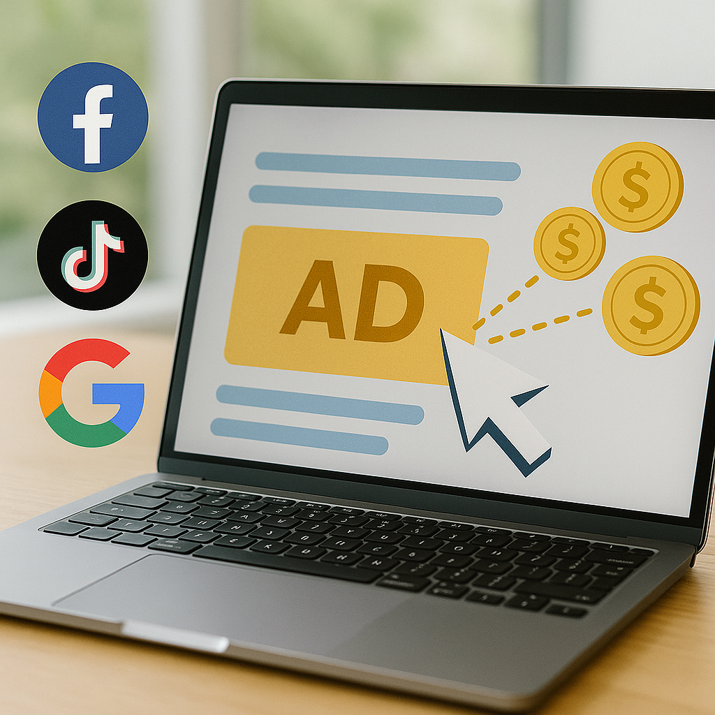 Campanhas na Meta, Google com foco em alcance e conversão.